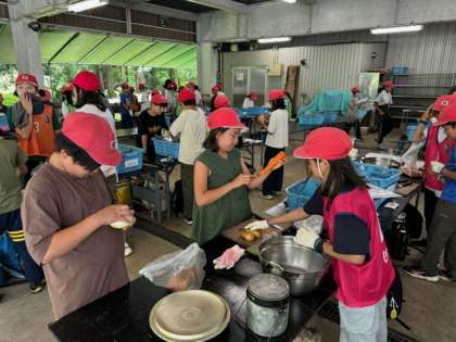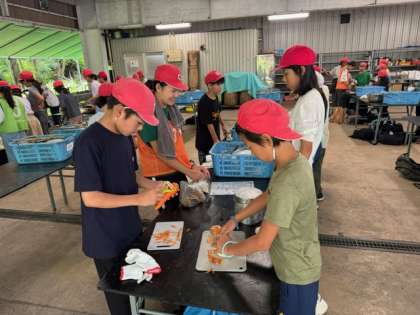 ピューラーを使って、ニンジンやジャガイモの皮をむいています。