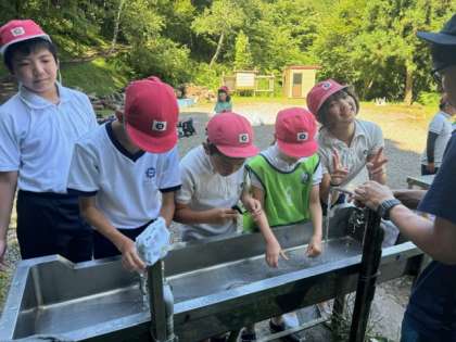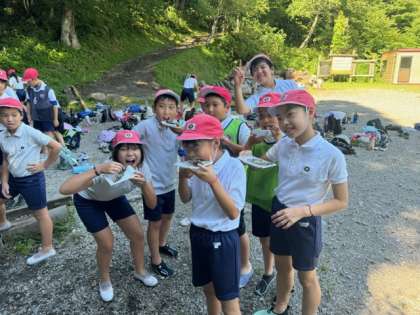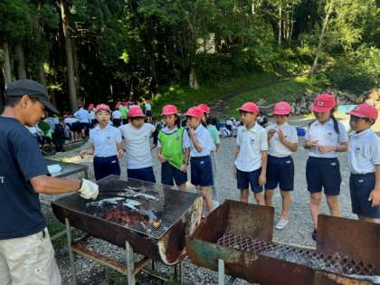 捕まえたニジマスは、塩焼きにしていただきました。