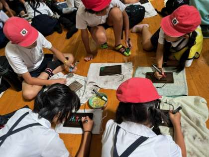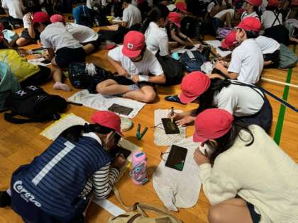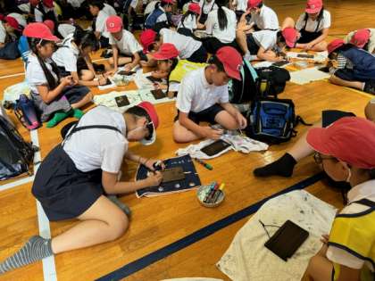 絵を描いたり文字を書いたり、思い思いに描いています。