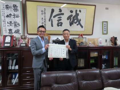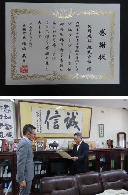 矢野建設さんへの感謝状 8月1日(木)