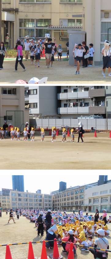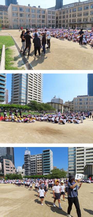 ・全員がそろう場所は運動場しかないが、熱中症対策上、長い時間滞在はできない。