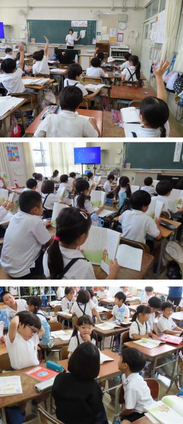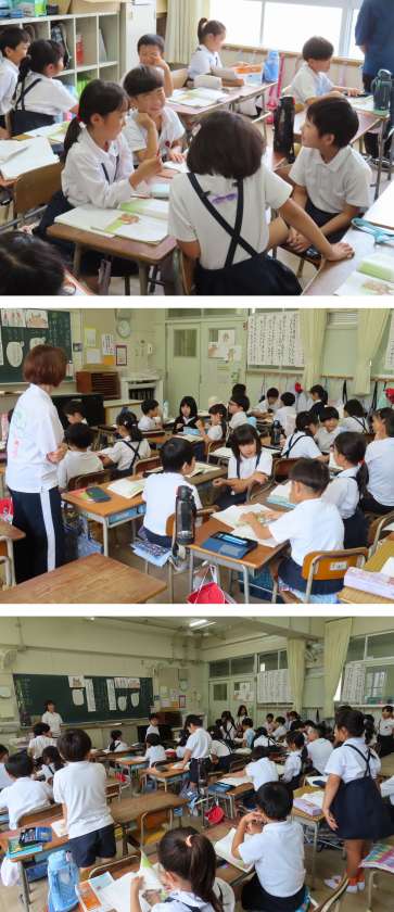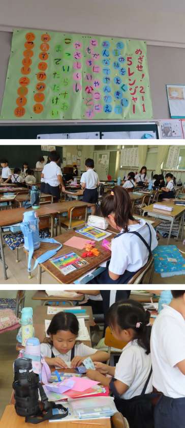 授業が始まる前の休み時間には、友だち同士集まって折り紙をしたり、消しゴムや鉛筆を使ったりして楽しそうに遊んでいました。