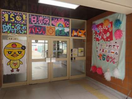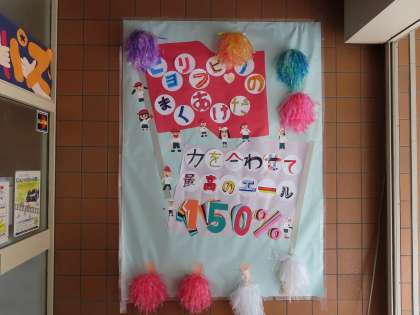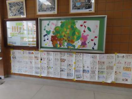 また、入り口近くには、全学年から集めた運動会の絵が飾られています。