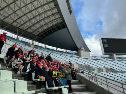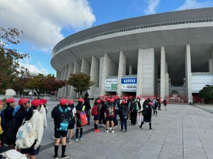今日6年生は、長居競技場で西区スポーツ交歓会に参加します。