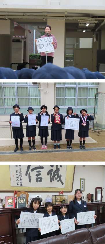17日(日)の全日本合唱コンクール全国大会で金賞だったものや、10月に行われたMBS合唱コンクールで賞を取ったものを、全校に紹介しました。