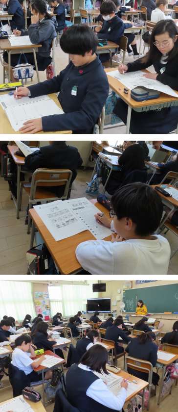 英語は、リスニングが中心で、英語での質問に記号で答えます。