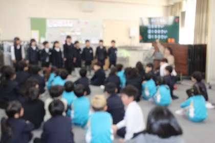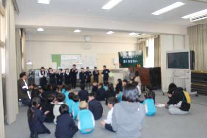 後半は多目的室で日吉小学校のことがわかるクイズを行いました。子どもたちは、とてもしっかりと進めることができました。
