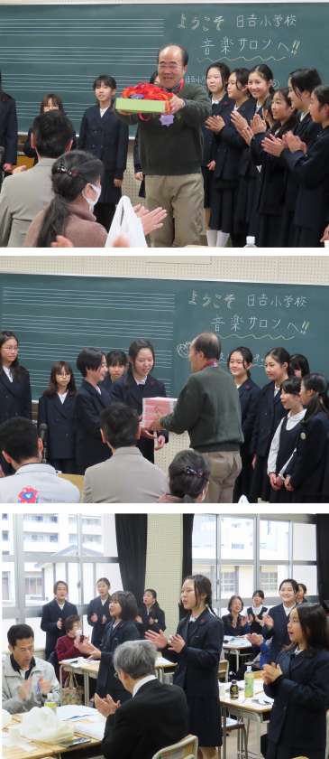 今日は、「はぐくみネット」が主催する『ふれあい音楽サロン』が、日吉小で行われました。