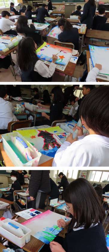 そのできた版画の回りに、クレパスや絵具で色付けをしていました。