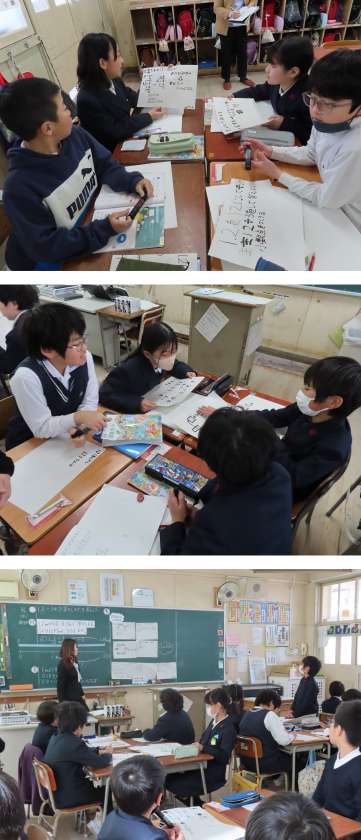 紙に考えを書いたり、友だちやグループで話合ったりしながら、考え方をまとめていました。