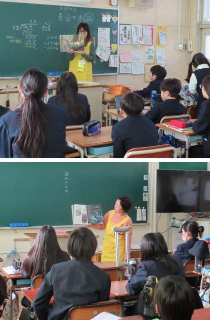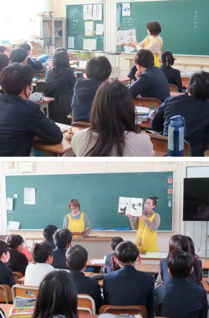 今日は、6年生にボランティアサークル『おひさん』による読み聞かせがありました。