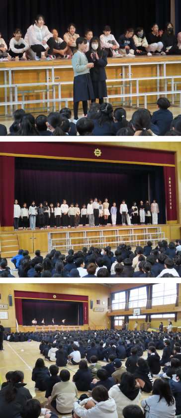 明日は、ブラバンと合唱クラブの発表が、8時25分から講堂で行われます。