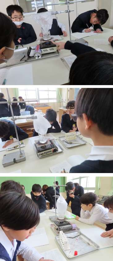 実際に水を沸騰させ、そのあわをビニール袋に集めて観察しました。