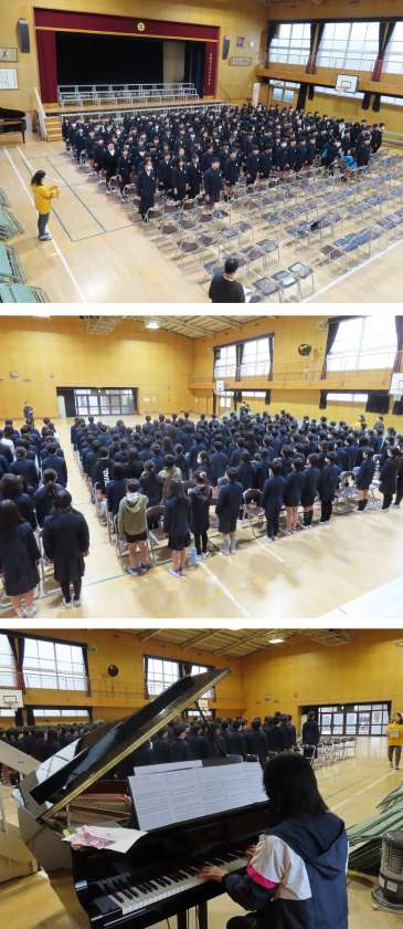 6年生は、今日から講堂で卒業式の練習を始めました。