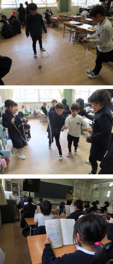 休み時間に教室に入ると、教室の後ろで何人かの子どもたちがコマを回していました。