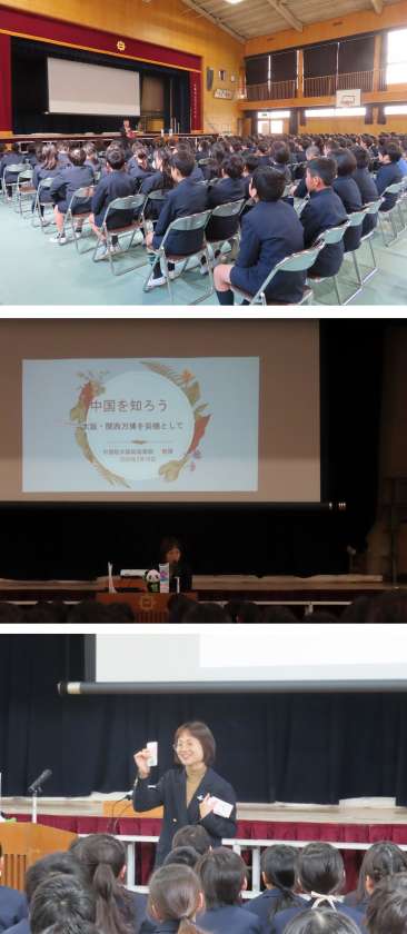 今日は、それに先がけ、中国領事館の方が来られて、中国の国や文化、万博に関連した取組みを話しに来てくださいました。