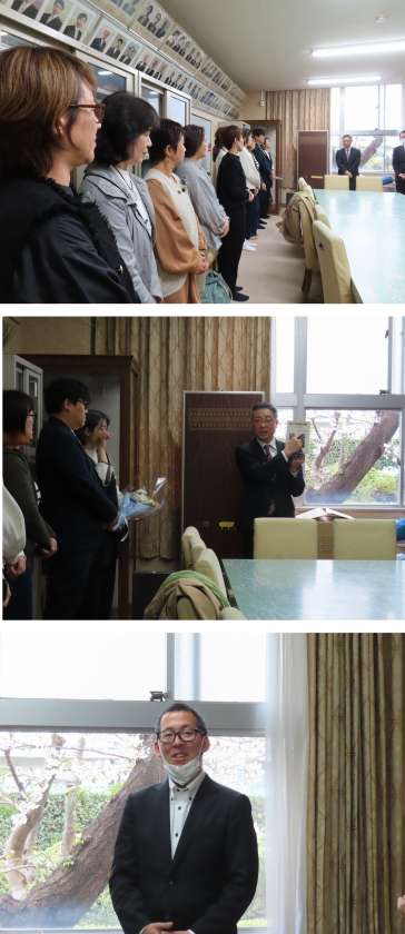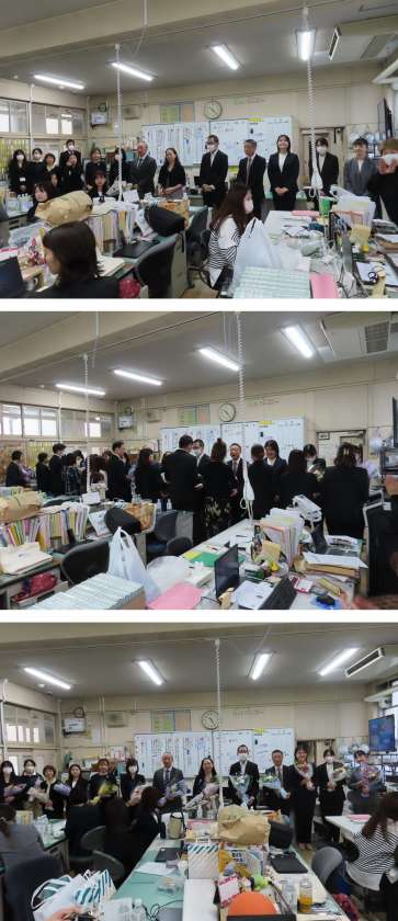 今日は、今年度末で日吉小を去られる教職員の方の『離任式』を行いました。