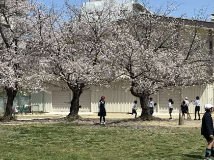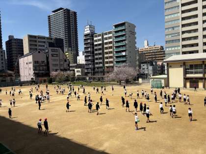 今日は新しい学年になって初めての休み時間です。とても良いお天気で暑さを感じるほどでした。多くの子どもたちが運動場で遊んでいました。学年の先生とドッジボールや鬼ごっこをして遊んでいる人がたくさんいました。教頭先生と鬼ごっこをしている人たちもいましたよ。