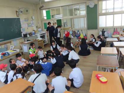 上は昨日、先生方が自己紹介ゲームの見本を6年生に見せている様子です。