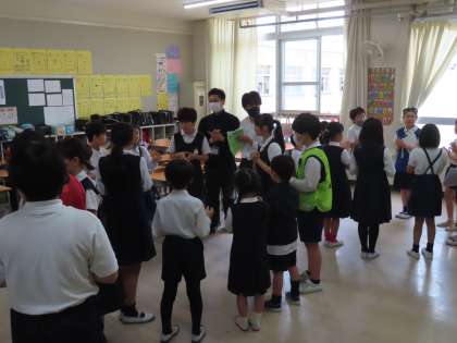 6年生が1年生を迎えに行き、各教室に集まり、リーダーを中心に自己紹介ゲームを行いました。
