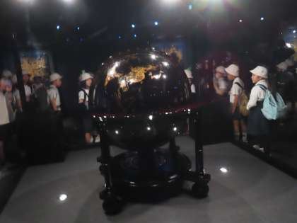 黒い地球儀は輪島の伝統工芸品、漆塗りで作成された作品とのことです。