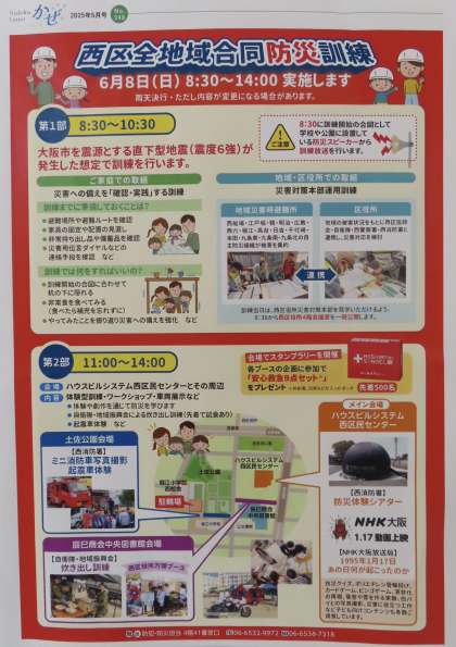 参加者に防災グッズが配られ、発電機の始動体験や、災害用地域地図の説明など地域の方々からお話を聞かせていただきました。