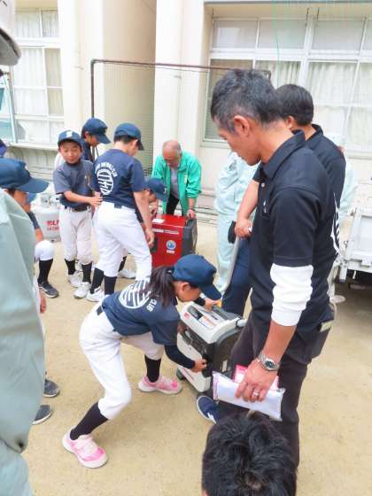 グランドで練習をしていたソフトボールの子どもたちが参加してくれました。