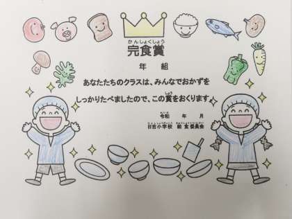 今日が最終日で、完食したクラスや給食の服装が整っていた学級には、表彰状が給食委員会から授与されます。今回の取り組みで各学年の残食が減りました。この後も残食ゼロを目指してほしいです。