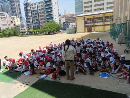 今日はかなり気温が高く、まわり終わり学校へ戻ってきた子どもたちの様子から、このあとに予定しておりました学級ごとのイオンへの見学は無理をせずに中止することとしました。