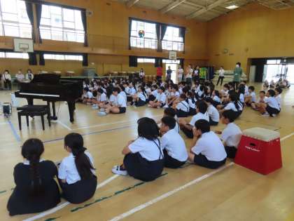 コンサートを来週に控え、校内の子どもたちに歌声の披露をする、超ミニミニコンサートを20分休みに行いました。