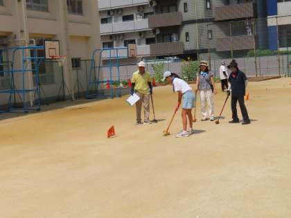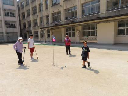 地域のグランドゴルフのみなさんと一緒に、運動場で、7コースを2ラウンド回りました。