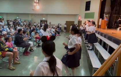 地域のみなさんの前で明るく楽しく元気に歌うことができました。