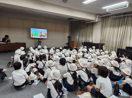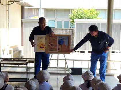 今日の2時間目3時間目はパッカー車の見学と、環境事業局の方々による、ゴミの分別のお話やリサイクルなどについて、絵本やクイズなどで、楽しいお話を伺いました。SDGsにつながるお話でした。