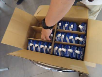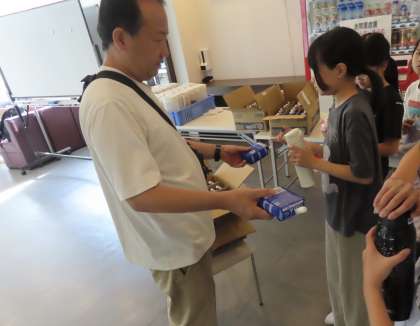 登山の前には、PTAからいただきました、熱中症予防のための冷凍アクエイリアスをひとり一つずつリュックに入れました。高丸山の頂上で飲んでいる人もたくさんいました。おかげさまで無事に登山を終えることができました。