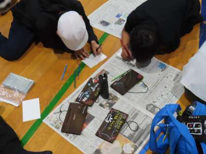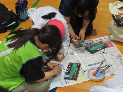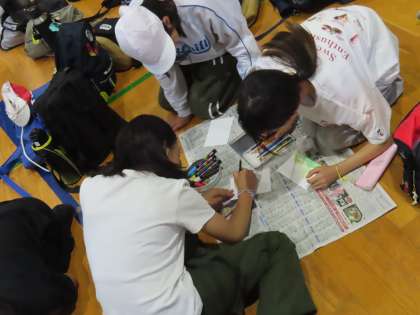 活動班で輪になり、友だちと相談しながら仕上げました。