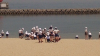 開舎式を終え、砂の造形が始まりました。爽やかな海の風を感じながら、どんなサンドアートができあがるか楽しみです。静かな砂浜にあちらこちらで歓声があがっています。
