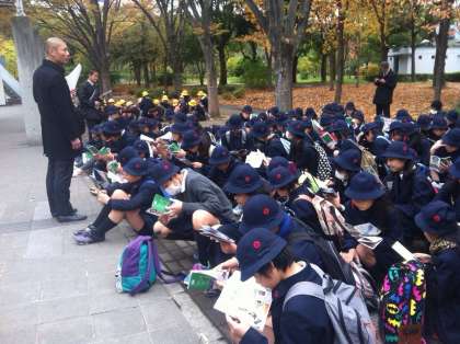 6年生は今、社会科で平和学習に取り組んでいます。その学習の一環として、今日は社会見学でピースおおさか・大阪城公園内戦跡めぐり、午後からは大阪歴史博物館を見学して帰ってきます。