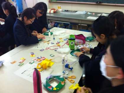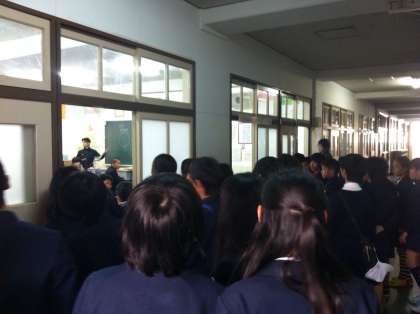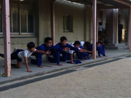 始めは1・2年生の授業風景を見学しました。「難しそう・・」という声も聞こえてきましたが、教室には顔見知りの日吉小学校で一緒に学んだ先輩たちもたくさんいたので少し安心したようです。