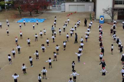 本日(24日)よりなわとび週間が始まりました。20分休みに低・中・高学年別になわとびをします。本日は低学年でした。それぞれ4回ずつ実施予定です。