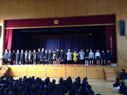 明日から給食週間が始まるので、その宣伝も兼ねて今日の児童集会は給食委員会の劇の発表でした。