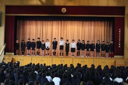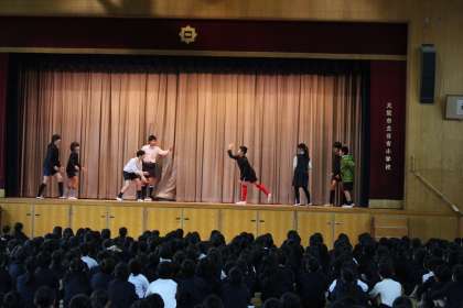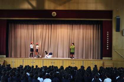 今朝の集会は、集会委員の6年生のみで行いました。これは、6年生の卒業前に行う恒例で、毎年3学期に実施します。今回の劇は『学校』をテーマにした内容でした。
