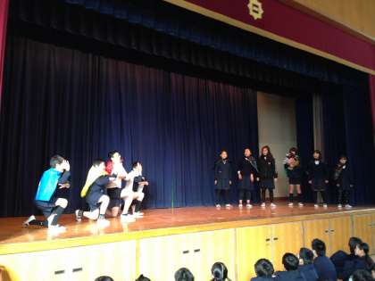 2月13日(木)、今日は今年度最後の音楽集会でした。ということは・・この一年間、音楽集会を盛り上げてきたミュージックマンの活躍や6年生が在校生の子ども達と一緒に歌うことが最後だったということです。
