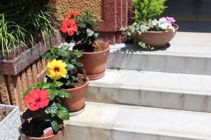 本校管理作業員が玄関の花を植え替えました。ご来校の際にはぜひご覧になってください。
