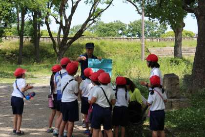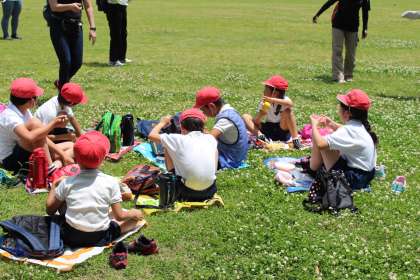 本日、全校児童でなかよし遠足に行きました。大阪城公園でオリエンテーリングをしたり、一緒にお弁当を食べたりと、ベストフレンド班(1〜6年生のたてわり班)で活動しました。