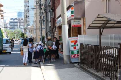本日(14日)の午前、2年生が町たんけんをしました。グループに分かれ施設や店などを回りながら、自分たちの校区を歩きました。