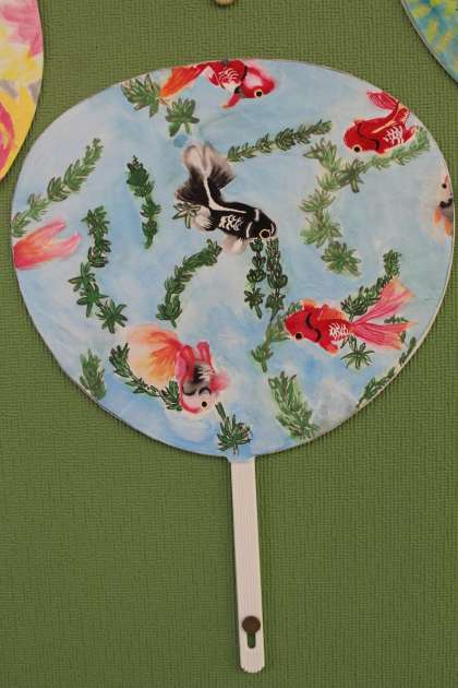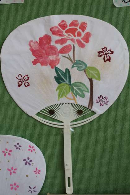 6年生が図画工作科の学習で「団扇で和風柄」を行いました。現在、各教室に飾っていますが、なかなかの出来栄えです。