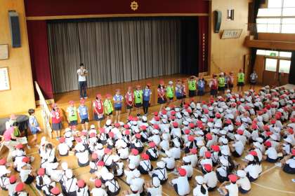 明日のひよしワクワクフェスティバルに向けて、今朝はグループ内の並び方を練習しました。