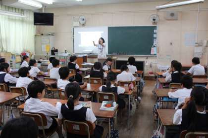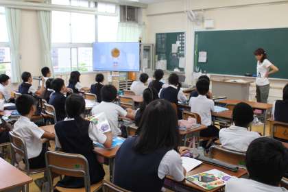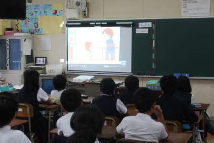 本日より後期時間割が始まりました。後期からは5時間目前に10分間の英語学習を行います。今日は初日のためか、児童も教師も少し緊張気味でした。