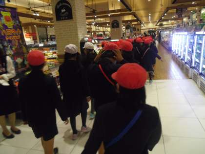 3年生が社会見学へ行きました。イオン大阪ドームシティ店を見学したり、店員さんの話を聞いたりしました。