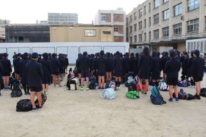 今朝の出発の様子です。6年生は元気よく出発しました。